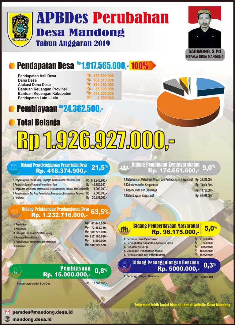 Pemasangan Infografis APBDes ini dilakukan atas dasar prinsip Transparansi Keuangan Desa. Selain itu Pemerintah Desa Mandong juga tetap melaksanakan sosialisasi APBDesa Tahun 2019 melalui Acara acara pertemuan-pertemuan warga lainnya. Banner Infografis APBDes 2019 juga akan disebarkan melalui website desa dan berisikan rincian dana yang diterima pemerintah desa beserta program kegiatan yang akan dilaksanakan pada tahun 2019 ini.